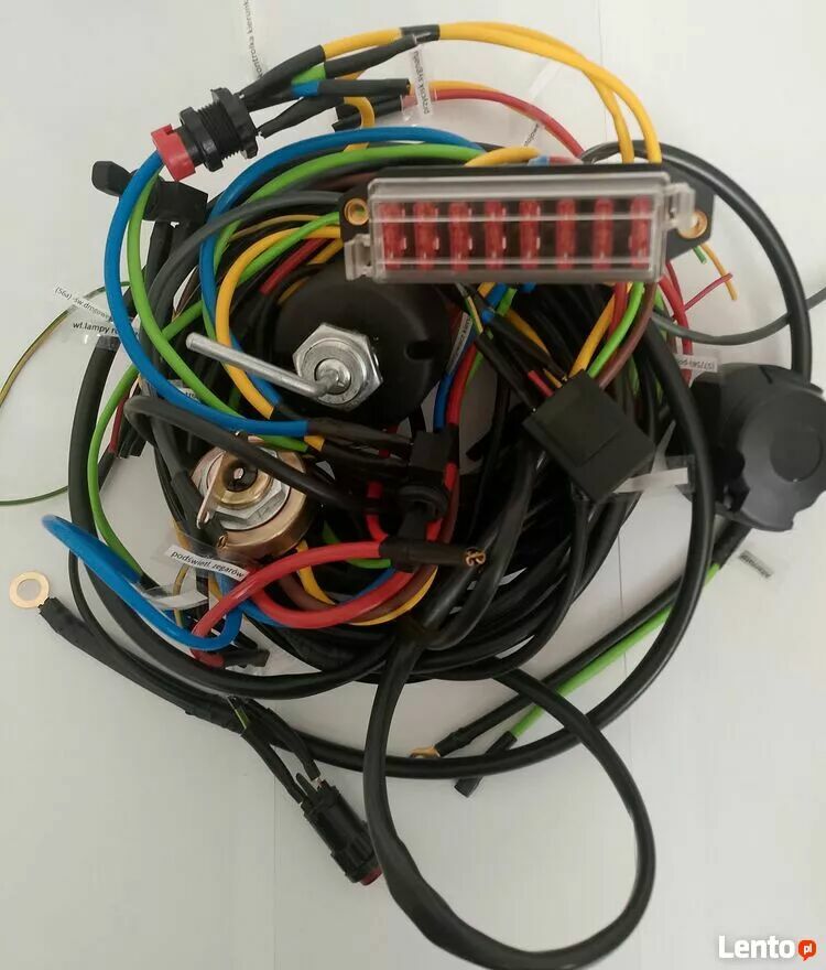 - stacyjka, skrzynka bezpieczników(do wyboru )- ze zdjęcia pasuje w miejsce starej bez przerabiania , przełącznik kierunkowskazów, przerywacz kierunkowskazów elektroniczny, przełącznik grzania i rozruchu, gniazdo przyczepy