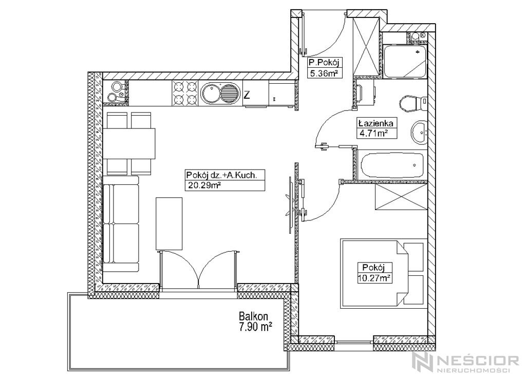 Dodatkowym atutem jest przestronny balkon o powierzchni 7,9 m²,