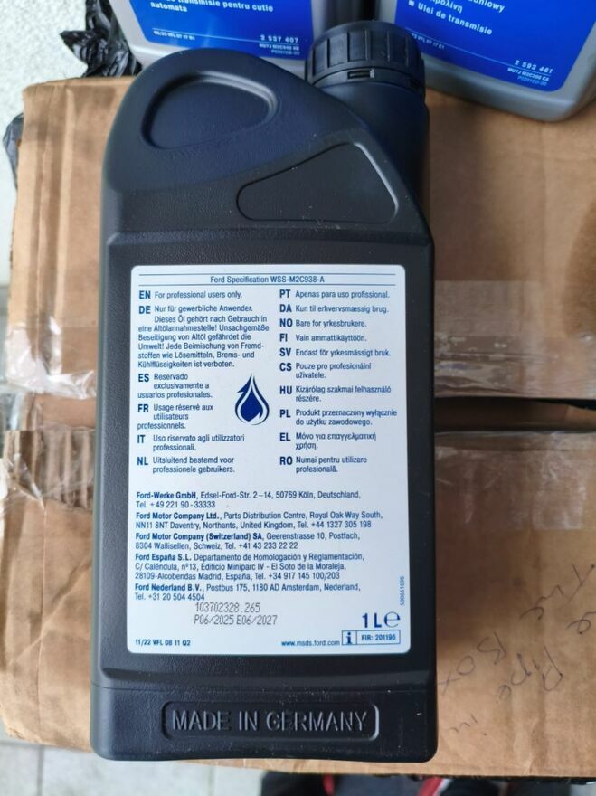 Oryginalny olej do automatycznej skrzyni biegów Ford C-ML5 (numer części 2 433 505) to płyn hydrauliczny, który może być również stosowany w układach wspomagania kierownicy.-
