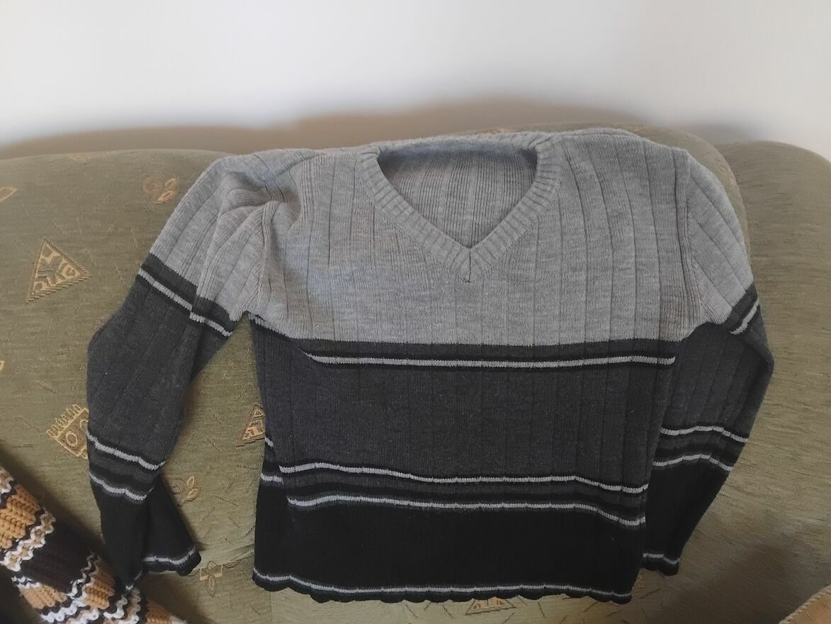 Sweter w dobrym stanie. W odcieniach szarości czerni. Może komuś się przyda.Monika